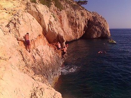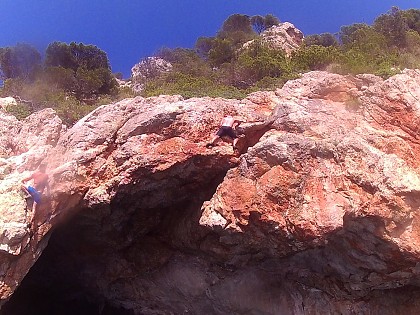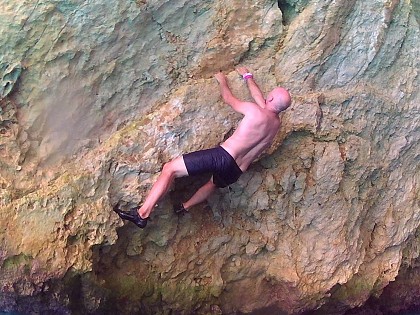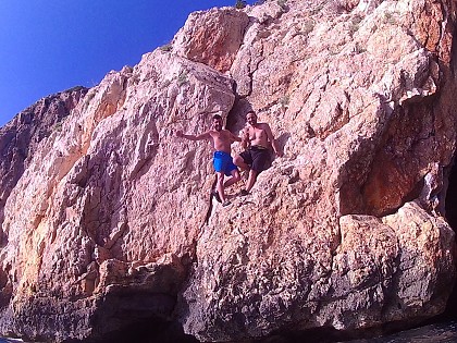 A la segunda va la vencida, el mar es imprevisible y la semana pasada tuvimos que abortar la salida por el mal estado de este, pero ayer jueves tarde, era el día, llegamos a las 17h a Ambolo y hasta casi las 21h estuvimos dándolo todo, psicobloc, bañitos, cervezas y mas psicobloc mas baños y mas cervecita, todo en un mar en calma y la temperatura del agua perfecta, ya pensando en repetir.